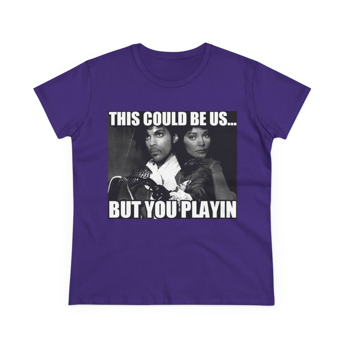 Bring a touch of humor and retro romance to your style with this PT Prince Appolonia “This Could Be Us But You Playin’” Meme Women’s Tee. Inspired by the unforgettable chemistry between Prince and Apollonia, this design perfectly blends 80s nostalgia with modern meme culture.